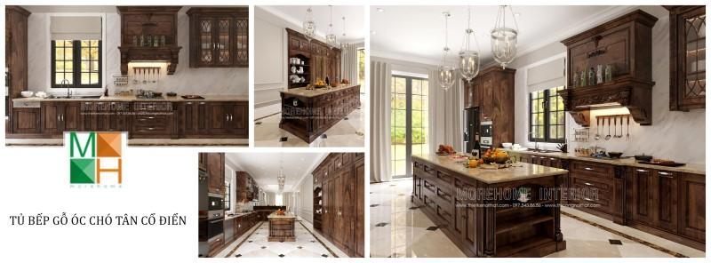 Sự kết hợp hài hòa giữa những đường nét tinh tế của phong cách tân cổ điển và sự trẻ trung, năng động của phong cách hiện đại, tủ bếp gỗ cao cấp nhập khẩu mang đến không gian sang trọng và đầy tinh tế